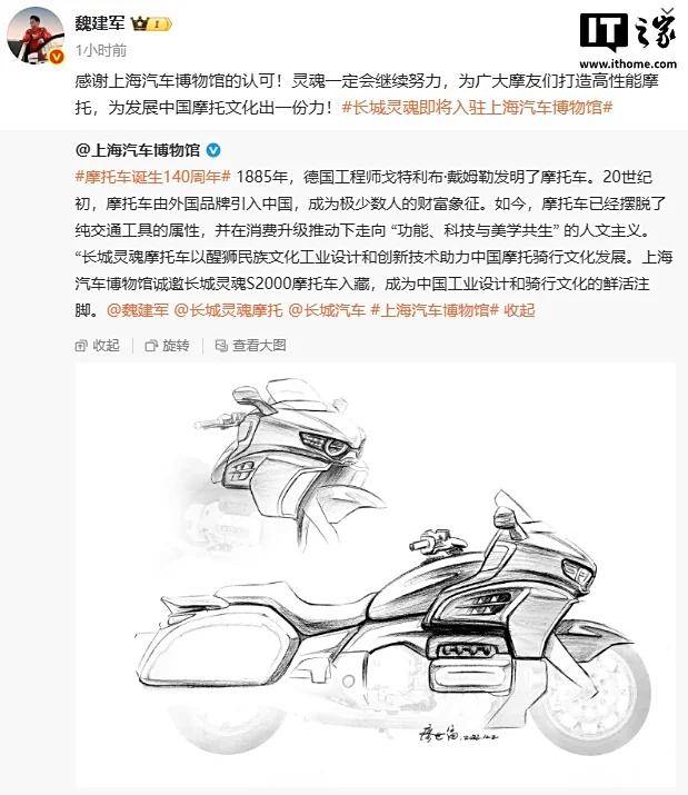 長城靈魂摩托車 S2000 將入駐上海汽車博物館,魏建軍發(fā)文致謝