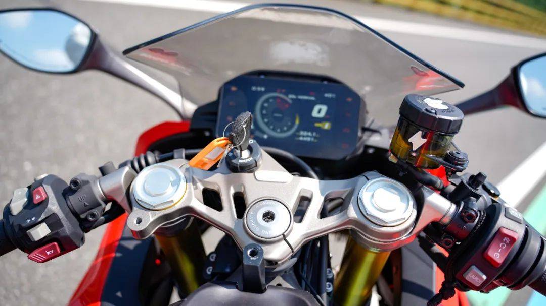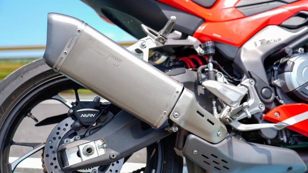 避震器為前倒置式前減,后中置預(yù)載可調(diào)多連桿減震器,雖然前避震器不可調(diào),好在出廠時整車對日常與跑山兼顧的較為完美,這點咱們后續(xù)動態(tài)一一講解。標(biāo)配鈦尺,不過我們拿到的是商家首批試駕車,未裝鈦尺,實際騎行中,也未感覺高速龍頭有不穩(wěn)定感。輪胎規(guī)格的選用上可見無極的理性,并未追求視覺效果而盲目的上180寬胎,而是采用前120/70-ZR17,后160/60-ZR17的高性能半熱熔輪胎,目的就是帶來更出色的靈活性。前制動采用日信對向四活塞卡鉗配290mm制動盤,后制動為日信單活塞卡鉗配220mm制動盤,標(biāo)配可關(guān)閉的ABS系統(tǒng),同時高配版本支持ABS pro,也就是我們常說的彎道ABS,將安全性能進一步提升,值得好評。細部配置方面,無極招牌的閥門排氣必不可少,一鍵切換戰(zhàn)斗聲浪讓喜歡的車友欲罷不能。原廠的油箱容積15.1L,油箱的線條設(shè)計更適合騎行時夾持,更利于操控。最有意思的是騎士駕駛正對的油箱部位,特意做了塑料件進行替換,里面是個小空腔,這對男性關(guān)鍵部位更友好,懂得都懂,這誰能不愛啊,太貼心了。RR500S作為無極的第二款四缸仿賽,用越級配置書寫競爭力的同時,售價更低2000,整車50:50完美重心比例和緊湊短軸距車身、強化后的低扭表現(xiàn),以及可開閉閥的聲浪選擇,誠意與性價比滿滿,更讓我們期待RR500s的動態(tài)騎行表現(xiàn),下期即將奉上。(感謝常州無極旗艦店提供試駕車輛)