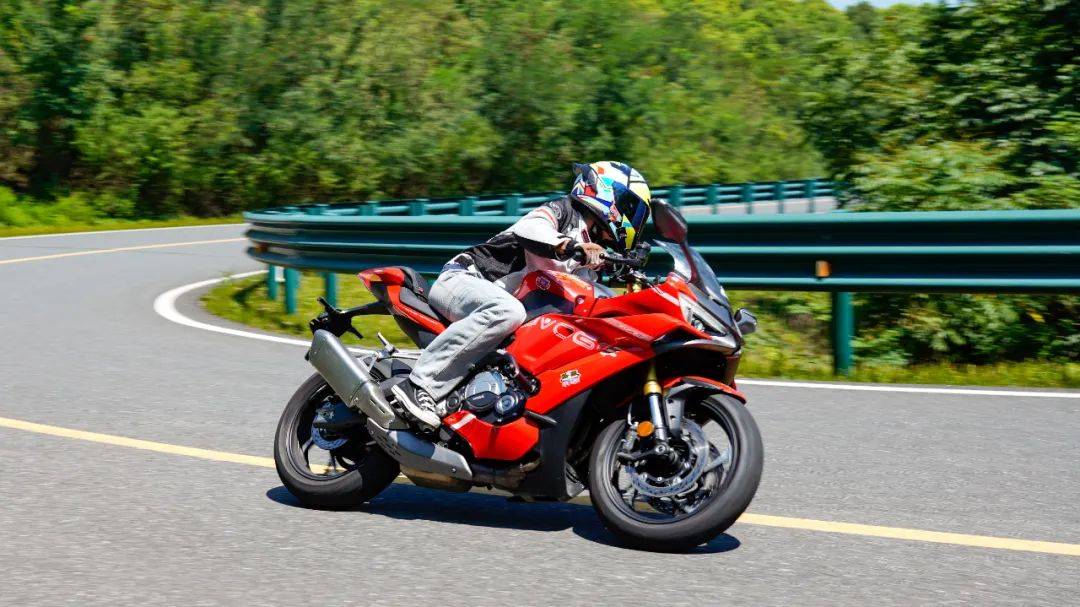 彎道體驗(yàn)講到彎道操控方面,必須得承認(rèn)無(wú)極在RR500S上50:50的軸荷比設(shè)定出色,配合原廠1385mm的短軸距,以及抗扭性強(qiáng)的鋼管編織車架,注定了整車的彎道性能強(qiáng)悍。在入彎前高速狀態(tài)(時(shí)速115km/h左右)進(jìn)行制動(dòng),滑動(dòng)離合器的質(zhì)感清晰,好用。同時(shí)檔位清晰,可以很好的將速度維持在安全區(qū)間內(nèi)進(jìn)彎,配合四缸引擎高延展性的出力特性,在5000轉(zhuǎn)時(shí)RR500S的翻身表現(xiàn)如同500級(jí)別雙缸仿賽一樣,足夠輕盈,好用,出彎后開(kāi)油,響應(yīng)線性沒(méi)有突兀感,給人的安定感十足。同時(shí)整車的彎道極限很高,即使激情跑山的狀態(tài)下,輪胎的極限也足夠,沒(méi)有觸到探地釘,恐怕只有將其帶到賽道上才能一睹其真實(shí)實(shí)力??傮w而言,RR500S在車輛響應(yīng),彎道姿態(tài)部分已經(jīng)做到了同級(jí)別出色的水準(zhǔn),原廠突出的油箱造型,在下彎時(shí)騎士的腿部得到很好地支撐。