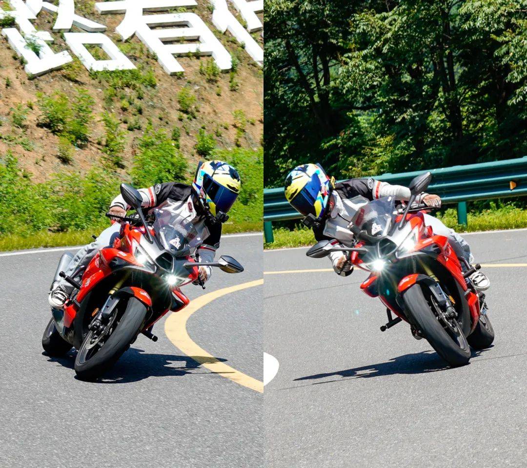 但RR500S在激烈駕駛中還是存在一點(diǎn)不滿意,在彎中帶剎翻身,轉(zhuǎn)速在10000轉(zhuǎn)以上時(shí)會(huì)出現(xiàn)一定的翻身響應(yīng)變慢的感覺(jué),此時(shí)前避震器會(huì)感受到略有一些支撐不足,路感不夠清晰,不過(guò)也不必太過(guò)擔(dān)心,這個(gè)表現(xiàn)只有在相當(dāng)激烈的高速跑山過(guò)彎或賽道場(chǎng)景才會(huì)觸及,在日常跑山中RR500S的表現(xiàn)稱得上出色,對(duì)得起工廠對(duì)其玩轉(zhuǎn)山道,獨(dú)領(lǐng)風(fēng)騷的宣傳。