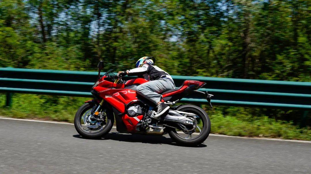 動(dòng)力實(shí)測(cè)作為一款主打山路運(yùn)動(dòng)的仿賽,有別于我們傳統(tǒng)意義上的四缸引擎,這臺(tái)無(wú)極自研的引擎特意進(jìn)行了低扭的強(qiáng)化,在更低的轉(zhuǎn)速下也能擁有不錯(cuò)的扭矩釋放,廠家宣稱5000rpm時(shí)可達(dá)到80以上的扭矩,為了測(cè)試低扭的輸出動(dòng)力,我們特意進(jìn)行了小油門操作,將轉(zhuǎn)速維持在2000rpm,不斷升檔,直到5檔2000rpm,這臺(tái)引擎依然穩(wěn)定,不拖檔不喘,對(duì)于城區(qū)低速行駛,好處明顯。摩托財(cái)智可別忘了這臺(tái)引擎斷油轉(zhuǎn)速在14000rpm,最大馬力77.5匹在12500轉(zhuǎn)才爆發(fā),中高轉(zhuǎn)的動(dòng)力同樣不俗。經(jīng)過(guò)不斷的拉油門嘗試,我們驚訝的發(fā)現(xiàn),在8000rpm之下,RR500S的低扭表現(xiàn)良好,新手朋友可以壓力很小的進(jìn)行駕馭,在8000rpm之上可以清晰的感受到速度提升依然迅捷,老鳥(niǎo)也可找到很多樂(lè)趣,同時(shí)油門的響應(yīng)線性可控,沒(méi)有明顯的突兀感,引擎的運(yùn)轉(zhuǎn)質(zhì)感在同級(jí)中可排一流水準(zhǔn)。伴隨著綿密的聲浪,RR500s的加速感強(qiáng)烈,經(jīng)過(guò)多次嘗試百公里的加速時(shí)間做到了4.8s,1檔的極速在96km/h,2檔135km/h,3檔175km/h,往后的檔位受制于路況安全并未一一測(cè)得。為了模擬日常使用中的加速超車場(chǎng)景,我們將速度維持在較高的狀態(tài)下,體驗(yàn)時(shí)速120后的再加速能力,油門全開(kāi),車輛依然能迅速提升到160km/h左右的高速,期間動(dòng)力線性順暢,基本能滿足到絕大部分摩友的動(dòng)力需求,再加速能力出色。高速狀態(tài)下行駛非??简?yàn)車架的穩(wěn)定性與抗拉伸能力,首先我們需要表?yè)P(yáng)的是RR500s即使在時(shí)速150的高速下,車身依然穩(wěn)定,前輪穩(wěn)定的貼合路面,經(jīng)過(guò)大橋時(shí)遇到橫風(fēng)也沒(méi)有出現(xiàn)明顯的晃動(dòng),值得好評(píng),這還是沒(méi)有鈦尺的情況下(商家首批試駕車未安裝鈦尺)。