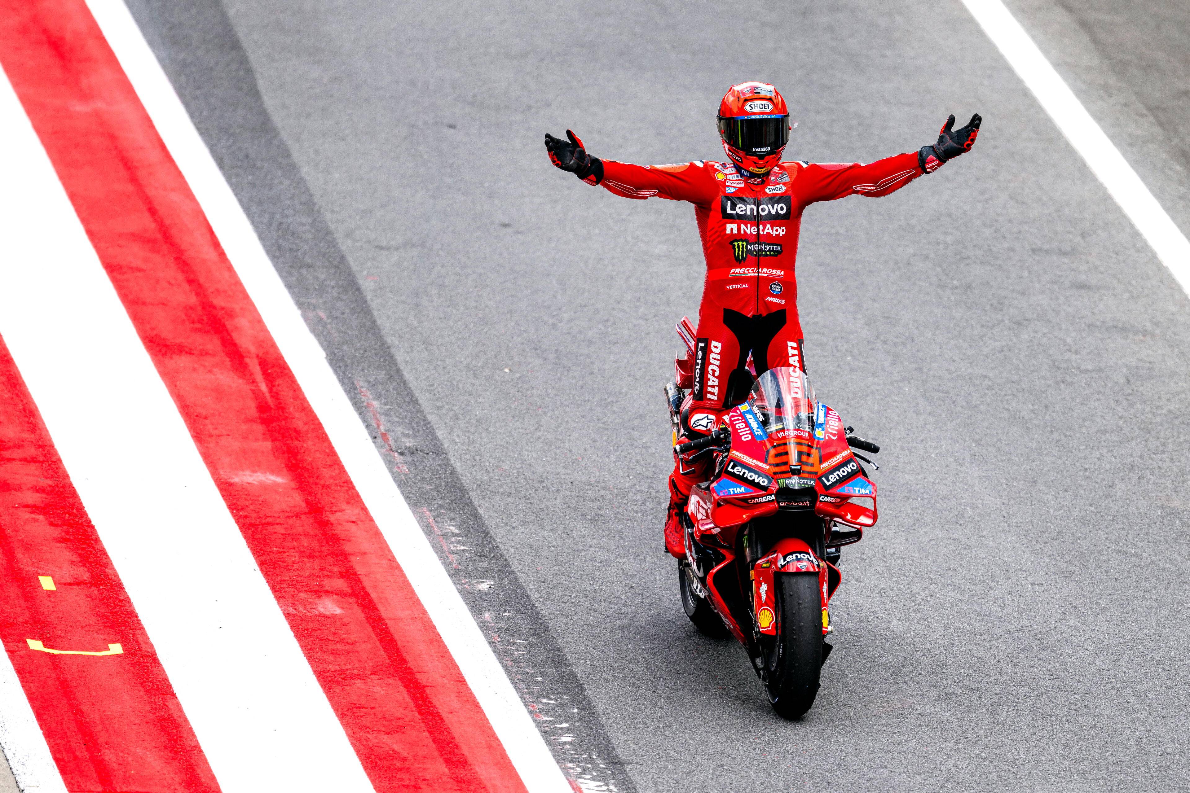 賽程為 14 圈的 Sprint 沖刺賽、比賽進(jìn)程是今年的 “ 常見現(xiàn)象 ”:馬昆斯兄弟倆從起步之后,就成為了整場比賽的領(lǐng)導(dǎo)者,小馬昆斯在比賽的前段領(lǐng)先、哥哥緊隨其后;到第 10 圈,馬昆斯成功超越了弟弟、拿到領(lǐng)先位置,并率先完成比賽、奪得了他在今年的第十二次沖刺賽勝利。