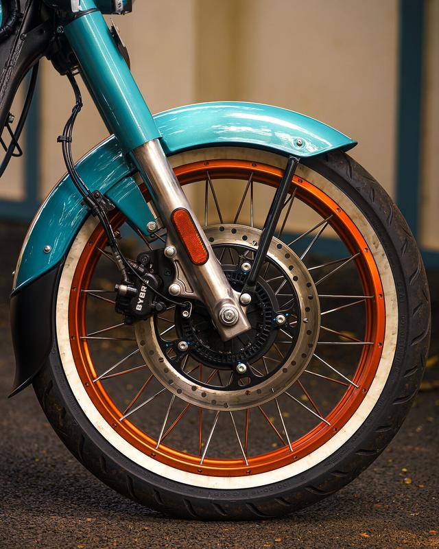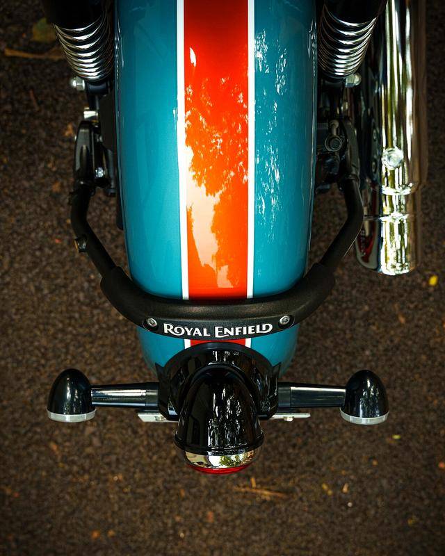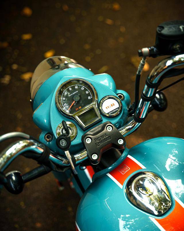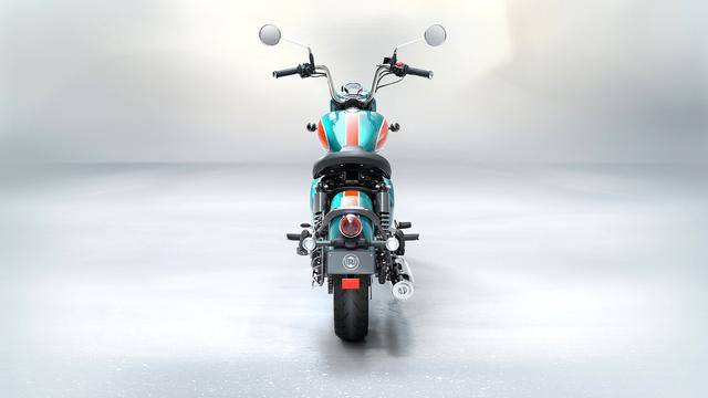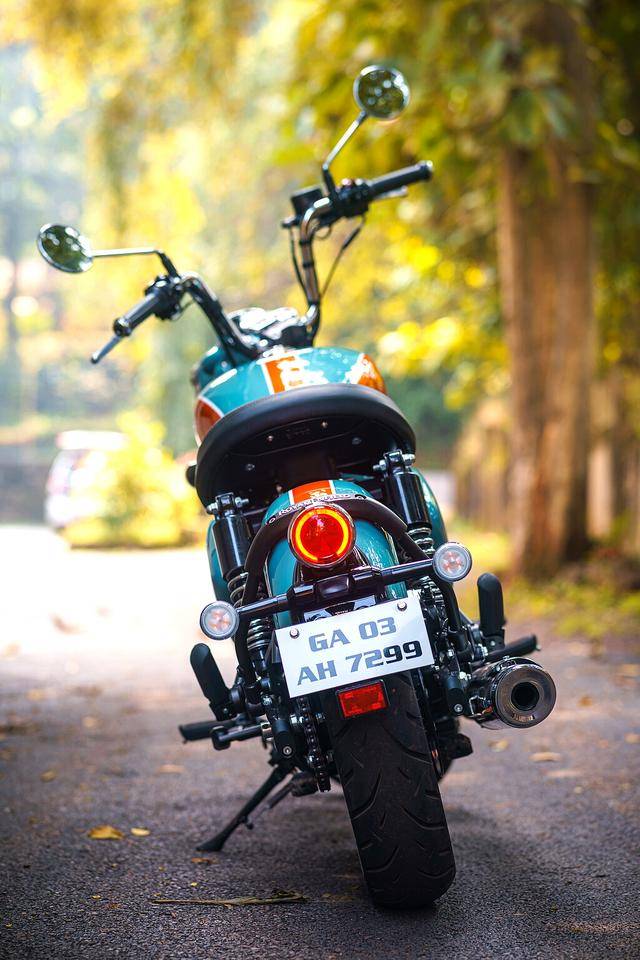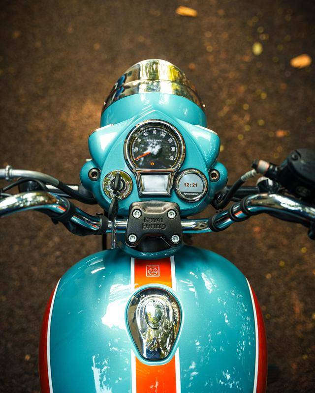 Classic 350 是皇家恩菲爾德的主力車型之一,搭載一副風(fēng)/油冷四沖程單氣缸、SOHC 兩氣閥的發(fā)動機,缸徑、行程為 75 mm x 85.8 nn,排氣量 349 cc,配備了電子燃油噴注系統(tǒng)、五檔的變速齒輪箱,峰值動力輸出 20 匹。車體采用一副鋼管式車架,徹底的、對標(biāo)上世紀(jì)六十年代風(fēng)格的復(fù)古造型,單座位是標(biāo)準(zhǔn)配置,圓形的前大燈,前后碟式的制動系統(tǒng),前 19、后 16 英寸直徑的車輪。
