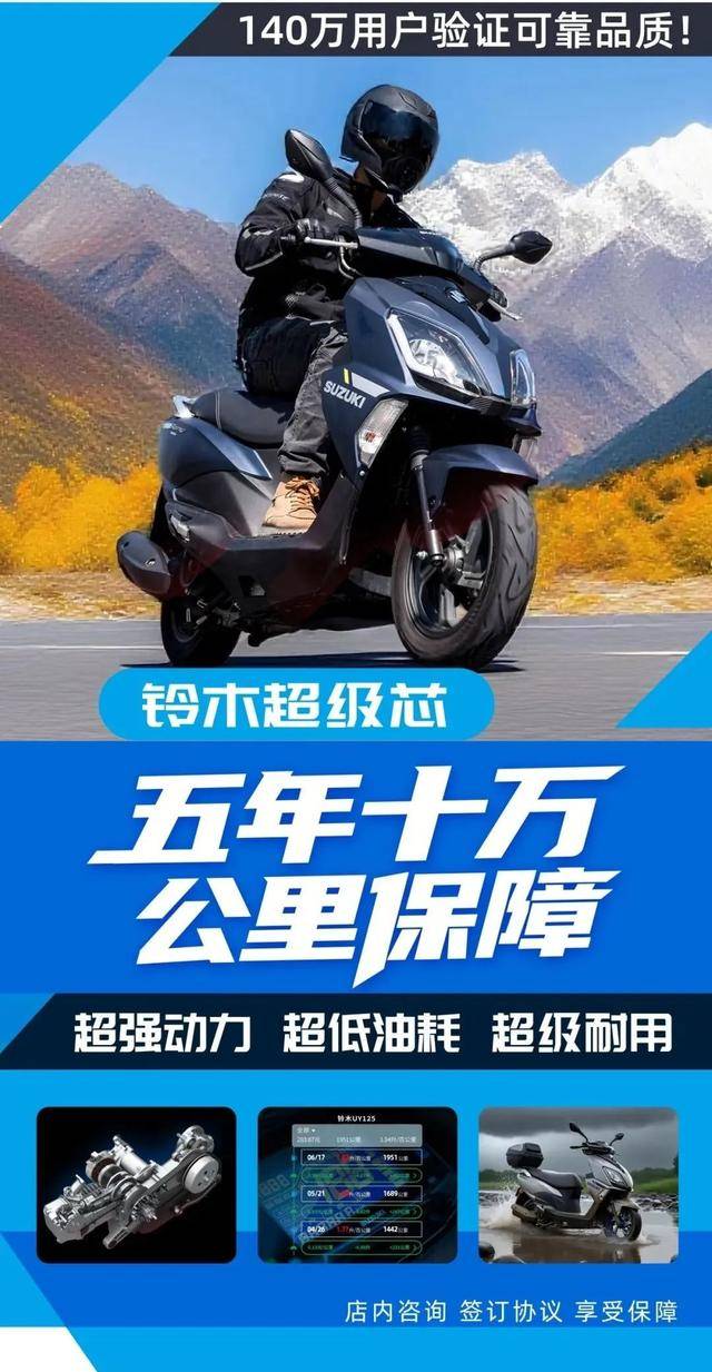 即日起,鈴木摩托鄭重推出鈴木U系列(UU125、UY125、UE125、US125)“超級(jí)芯”發(fā)動(dòng)機(jī)【五年十萬(wàn)公里】超長(zhǎng)質(zhì)保服務(wù),以行業(yè)領(lǐng)先的質(zhì)保政策,為您的用車生活保駕護(hù)航。發(fā)動(dòng)機(jī)作為摩托車的核心動(dòng)力源,其可靠性與耐用性是產(chǎn)品品質(zhì)的堅(jiān)實(shí)基石。正是源于對(duì)這款產(chǎn)品品質(zhì)的十足信心,我們才敢于做出如此鄭重的承諾。