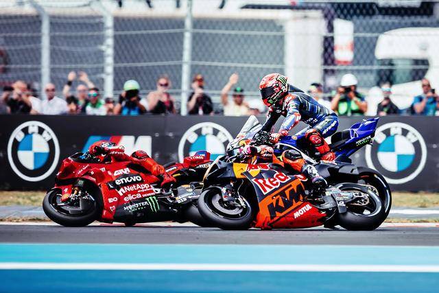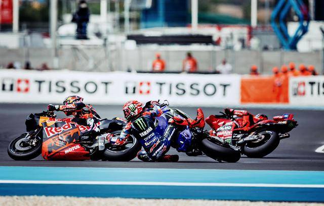 賽程為 13 圈的 Sprint 沖刺賽,起步后的第一個(gè)彎,20 號(hào)車的夸塔拉羅就因?yàn)閮?nèi)線剎車不及而撞到了 23 號(hào)車的意大利車手巴斯塔尼尼(Enea Bastianini),意外導(dǎo)致這位法國(guó)車手退賽、并在賽后因這次的冒進(jìn)而被追加了處罰(隨后的正賽跑一次長(zhǎng)圈);同樣是在第 1 圈的比賽,到了 9 號(hào)彎,巴斯塔尼尼的一次大膽攻擊,導(dǎo)致他與場(chǎng)內(nèi)的另一位法國(guó)車手、5 號(hào)車的扎科(Johann Zarco)發(fā)生了碰撞,結(jié)果雙雙退賽。賽后,巴斯塔尼尼被追加了正賽跑兩次長(zhǎng)圈的處罰。