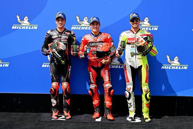 MotoGP 級(jí)別,駕駛著 93 號(hào)車西班牙車手馬昆斯(Marc Marquez)以 1 分 36.518 秒的最佳圈速,奪得了排頭位發(fā)車;后面,兩位意大利車手,駕駛 72 號(hào)車的貝澤奇(Marco Bezzecchi)和 49 號(hào)車的吉南托里奧(Fabio Di Giannantonio)分別排在第二、第三位起步。