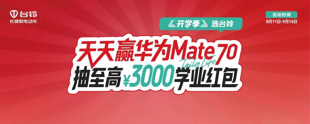 開(kāi)學(xué)神車(chē)已就位!臺(tái)鈴爆款現(xiàn)象級(jí)熱銷(xiāo):購(gòu)車(chē)贏華為Mate70,抽3000元紅包!