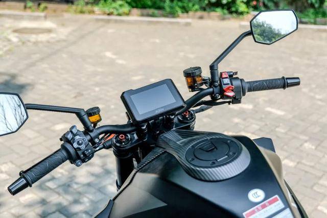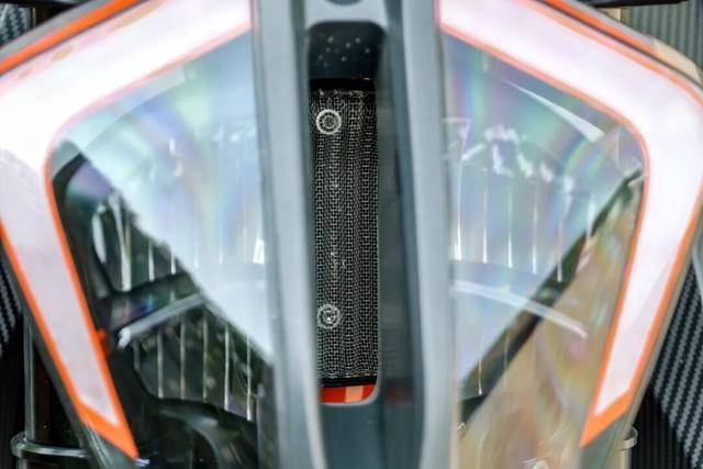 第一眼看上去,這款車就與傳統(tǒng)街車劃清界限。車身設(shè)計尖銳而極致,除了標(biāo)志性的頭燈之外,油箱側(cè)板和車尾的設(shè)計十分夸張,讓這款車看起來十分犀利。隱藏在犀利外觀下的是極致的輕量化。標(biāo)志性的“分裂臉”LED大燈中央,隱藏著功能至上的沖壓進(jìn)氣導(dǎo)管,隨著車速提升,它貪婪吞噬氣流為發(fā)動機(jī)注入更強(qiáng)爆發(fā)力。視線后移,全車外殼機(jī)會都是碳纖維材質(zhì),碳纖維鏈蓋、碳纖前后擋泥板乃至0.85公斤的極致碳纖維一體式車尾,讓這款車減重到180kg的干重,更讓車體視覺呈現(xiàn)出賽用機(jī)械特有的凌厲感。