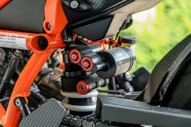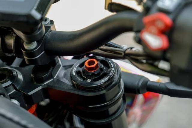 在碳纖外殼下,是一套為駕馭狂潮而生的硬核裝備。前WP APEX PRO 7548和后WP APEX PRO 7746懸掛系統(tǒng)堪稱賽道下放的黑科技,比1290SDR的前后減震進(jìn)一步提升。前倒叉為分體式壓縮回彈設(shè)計,再加上封閉式腔體技術(shù)讓這款減震阻尼更加穩(wěn)定,頂級的機(jī)械減震。后減震裝備單獨(dú)儲油罐,更大儲油量,為減震器帶來更好散熱表現(xiàn),彈簧預(yù)載可在無工具情況下快速調(diào)節(jié),允許車手將避震器長度從353mm調(diào)整到360mm,憑借SCS BIG VALVE 大口徑閥片技術(shù),最大限度為車手提供精準(zhǔn)的反饋。當(dāng)車輛壓過彎中顛簸,這套懸掛以近乎讀心術(shù)般的響應(yīng)吸收震動,將干擾隔絕于車架之外,讓輪胎始終緊貼路面,這正是RR彎中如軌道車般穩(wěn)定的秘訣。再加上APEX Pro 7117可調(diào)肽尺,擁有30段可調(diào)阻尼。無論是街道還是賽道,這套減震完全可以應(yīng)付。