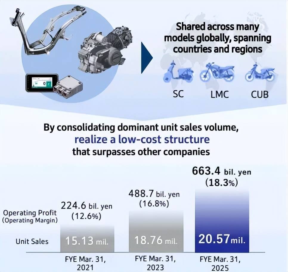 2025財(cái)年本田摩托車的銷量,凈利潤(rùn)和利潤(rùn)率信息,來(lái)源:本田公司財(cái)報(bào)