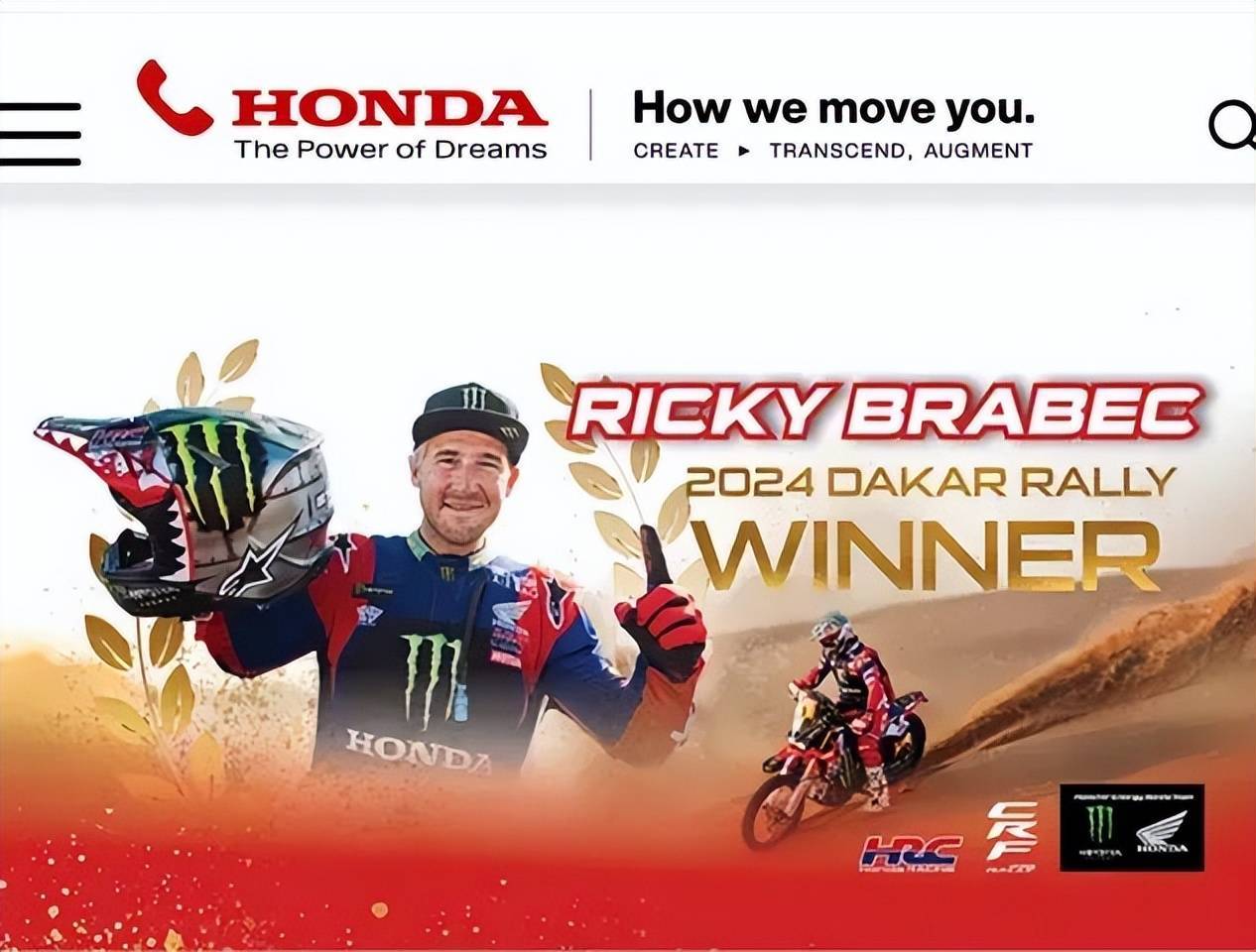 2024年,瑞奇·布拉貝克駕駛本田CRF450 Rally獲得達(dá)喀爾拉力賽冠軍的海報(bào)