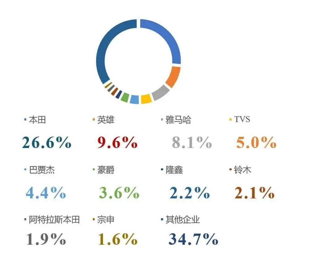 全球排名第二的印度英雄摩托車,第三的雅馬哈,與本田也不在一個(gè)數(shù)量級(jí)。
