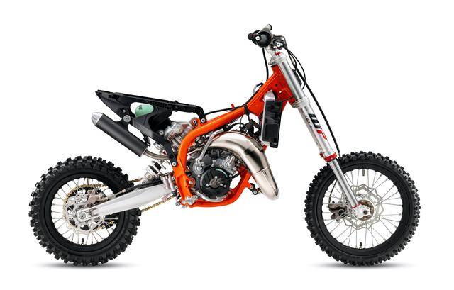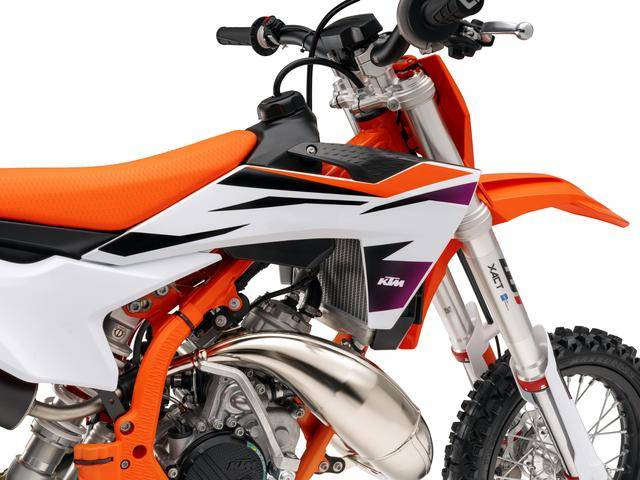 迷你運(yùn)動(dòng)車(chē)型系列,全部都采用了新的車(chē)身圖案/貼花,懸掛系統(tǒng)經(jīng)過(guò)重新設(shè)置,65 SX 采用了經(jīng)過(guò)改進(jìn)的離合器,而 85 SX 則配備了一個(gè)新的后制動(dòng)桿。