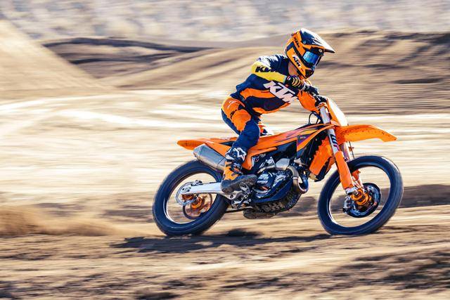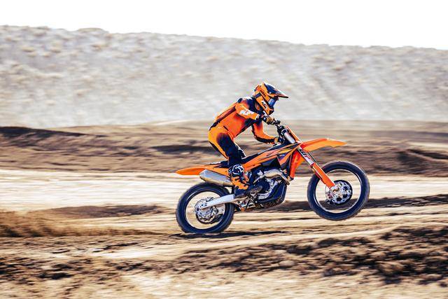 * 配備了水冷兩沖程單氣缸、排氣量 249 cc(缸徑、行程為 66.4 mm x 72 mm)發(fā)動(dòng)機(jī)的 250 SX,同樣配備了 EFI 電子燃油噴注系統(tǒng)、五檔的變速齒輪箱,最大動(dòng)力輸出為超過(guò) 53 匹。