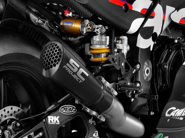 RSV4 X-GP搭載1099mL的65° V4發(fā)動機(jī),經(jīng)Aprilia Racing部門深度調(diào)校后,最大功率飆升至238匹,峰值扭矩131N·m,紅線轉(zhuǎn)速達(dá)14100r/min,成為Aprilia史上最強(qiáng)量產(chǎn)發(fā)動機(jī)。此外還配備了高壓縮比活塞,SC Project鈦合金排氣系統(tǒng),STM干式離合器等等。