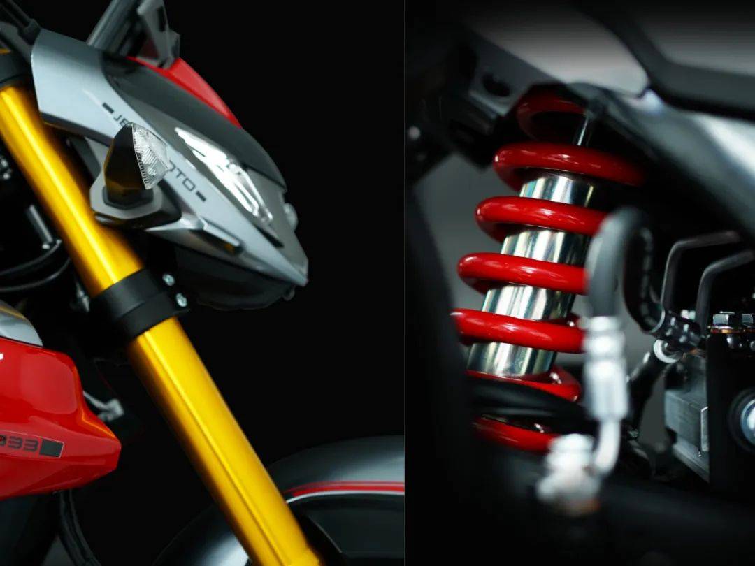 DID鏈條傳動(dòng)更穩(wěn)定耐用,日信卡鉗帶來更高效的制動(dòng)力。糖果漆面+變形金剛式外骨骼油箱,實(shí)車質(zhì)感堪比進(jìn)口車。覆蓋件之間接縫均勻、對(duì)稱、緊密,車體焊縫均勻、平滑、連續(xù),做工不輸大廠水準(zhǔn)。