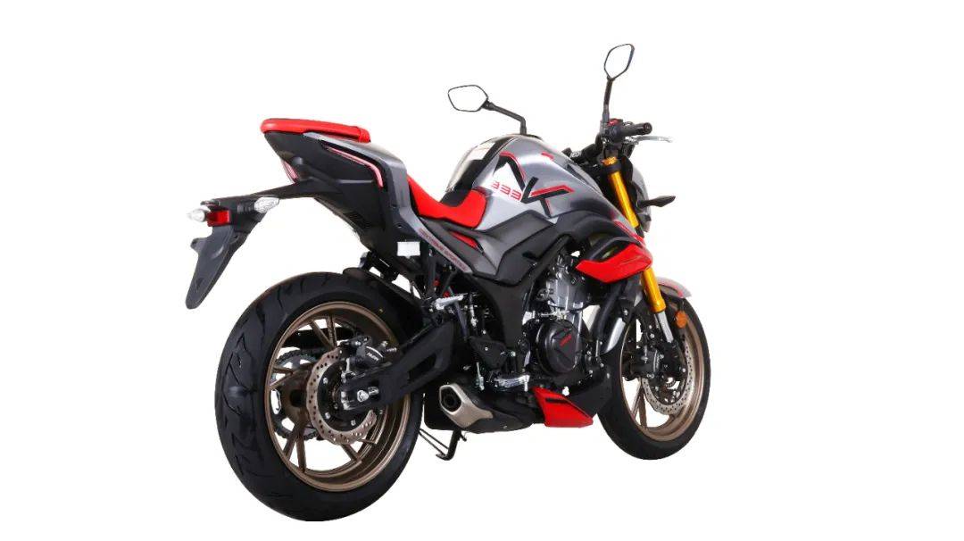 NK333整備質(zhì)量只有163KG,放在250仿賽中也是偏輕的,裸車前后輪質(zhì)量分配近1:1。特別設(shè)計(jì)的16kg跨接棱形鋼管車架,行業(yè)首次采用不對(duì)稱鏤空設(shè)計(jì)的鷗翼式鋁合金后平叉,僅5公斤的極致輕量化,保證優(yōu)越的剛性和不對(duì)稱美學(xué),載荷表現(xiàn)更穩(wěn)定轉(zhuǎn)向、調(diào)頭、制動(dòng)等操作響應(yīng)靈敏,縱向剛度提升了37%,追求剛性的同時(shí)滿足了輕量化。后平叉是公升級(jí)車使用的,遠(yuǎn)超同排量車的抗扭力,在急加速和高速過彎時(shí),信心更足。