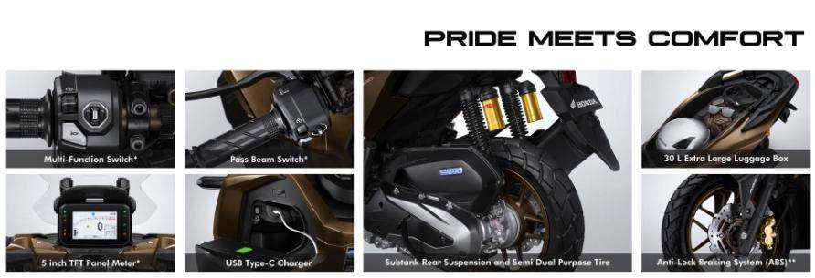 作為一款具有冒險(xiǎn)元素的踏板車,ADV160擁有 165mm的離地間隙和 長(zhǎng)行程懸掛