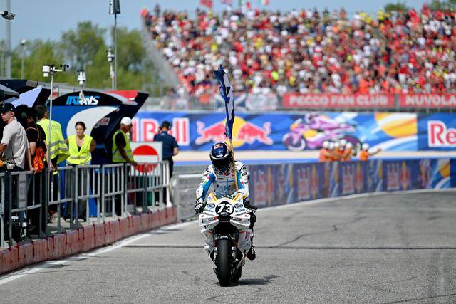 下半場的比賽,冠軍爭奪戰(zhàn)在馬昆斯與貝澤奇之間展開,兩人一前一后在全長 4226 米的米沙諾賽道上追逐著;最終,馬昆斯率先沖線、奪得了圣馬利諾站正賽的勝利,拿到了 2025 賽季的第十一個分站冠軍;落后前車 0.568 秒,貝澤奇獲得了亞軍;小馬昆斯最后拿到了季軍。