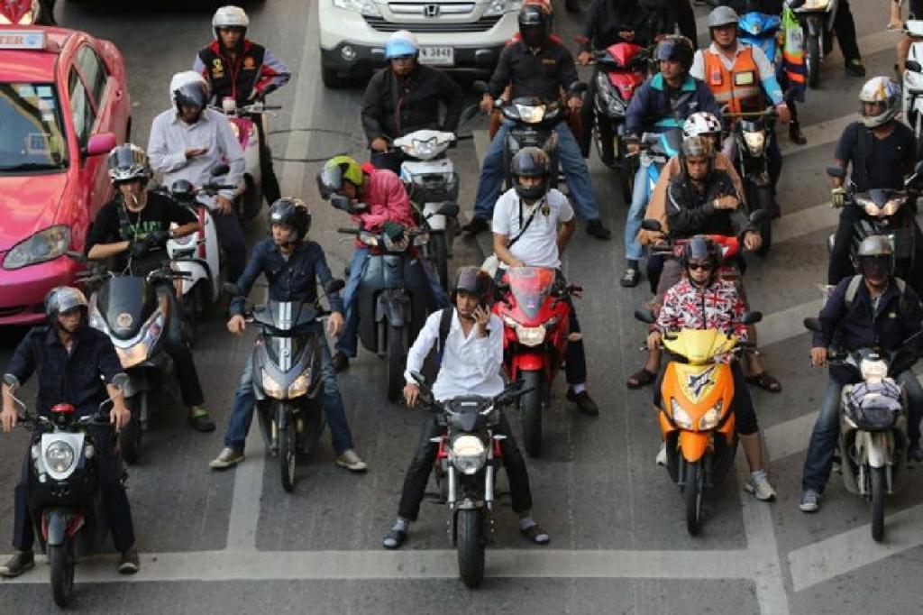 曼谷的高架橋下、紅綠燈前、天橋坡口,經常變成 " 臨時摩托車停機坪 "。