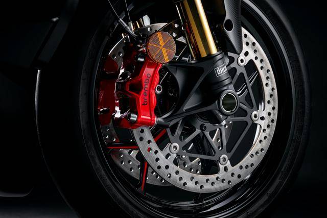 6、Brembo布雷博配套的剎車卡鉗,前面采用了紅色的 Stylema 剎車卡鉗(標準款采用了金色的卡鉗);