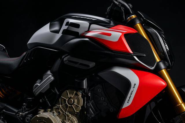 杜卡迪在 2023 年十月公開了首個 RS 規(guī)格車型:2024 Multistrada V4 RS。這一版本的標志性特點,是將峰值性能相對低一點、排氣量 1158 cc(缸徑、行程為 83 mm x 53.5 mm)的 Granturismo 發(fā)動機,換成了與超級跑車Panigale V4、旗艦級運動街車Streetfighter V4 同平臺的 Desmosedici Stradale 發(fā)動機(缸徑、行程為 81 mm x 53.5 mm,排氣量 1103 cc)。而兩個新的 2026 RS 車型,就是換裝了更強高轉(zhuǎn)速性能的動力裝置作為基礎(chǔ)。此外,兩個車型均采用了帶獨特編號的形式生產(chǎn),這暗示此兩個車型或是限量發(fā)售的版本。