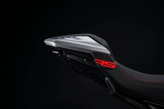 8、鈦合金制的消聲器外蓋,碳纖維制的前后擋泥板、前整流罩、單座尾部整流罩和進氣管道,以及 RS 款的專屬車身圖案/貼花。