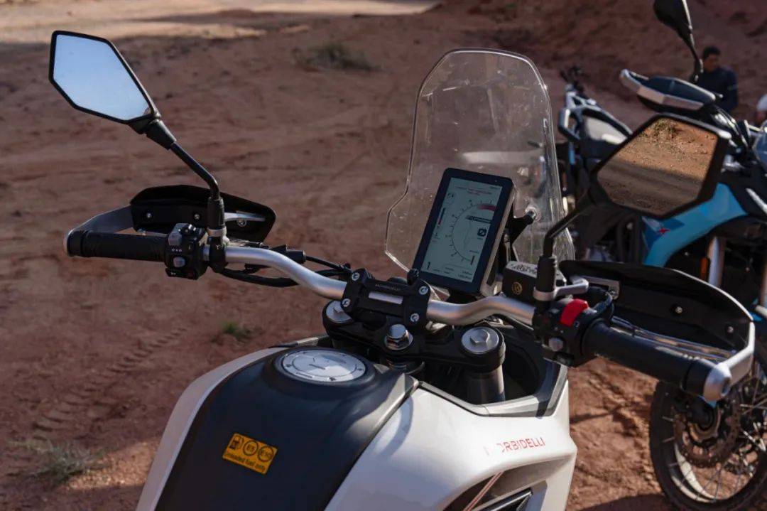 ON-ROAD方面表現(xiàn)看來(lái),T502X采用7寸TFT全彩液晶顯示豎屏,820mm座高,搭配柔軟收窄的坐墊,適合絕大部分人的身高,配合恰到好處的手把位置,坐姿舒展,從容駕馭。根據(jù)騎乘三角可手動(dòng)多段可調(diào)風(fēng)擋,手把護(hù)罩,舒適騎行,更加愜意。