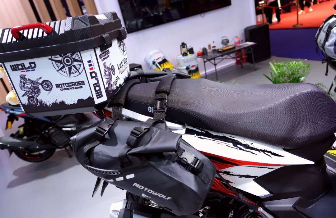 G05給人的初印象,就是一種非常干練、野性,騎上隨時都能去“玩泥巴”的既視感。會產(chǎn)生這種想法并不奇怪,因為這款車的前臉具備非常強烈的越野特征,加之外觀線條硬朗,配備原裝護杠、邊包、射燈、剎車盤護罩等跨界裝備,極具戶外風格。