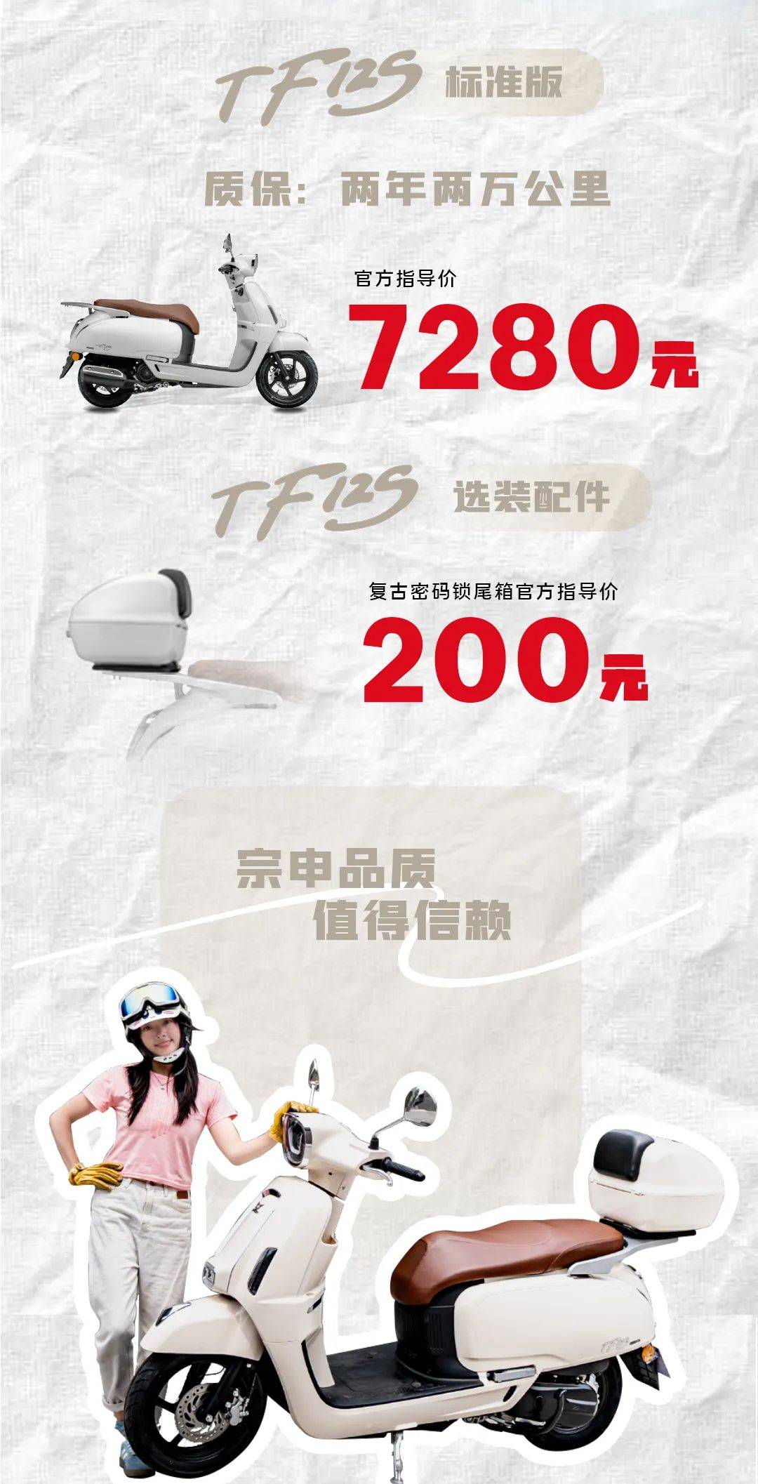 7280元,宗申新款復(fù)古踏板TF125,精致登場(chǎng)