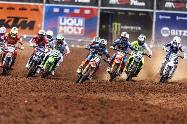 MX2 級(jí)別,積分榜的領(lǐng)先者、駕駛 27 號(hào)車的德國車手朗根菲爾德(Simon Langenfelder),在賽前有著 16 分的優(yōu)勢(shì)。三個(gè)計(jì)算積分的競賽環(huán)節(jié)里,積分第二的應(yīng)屆世界冠軍、1 號(hào)車的荷蘭車手沃爾夫(Kay de Wolf),盡管在前兩個(gè)環(huán)節(jié)都拿到了第一、進(jìn)一步縮短了與領(lǐng)先者的差距,但最終仍無法阻止朗根菲爾德在第二節(jié)比賽的穩(wěn)健推進(jìn),第六名、15 分的積分,讓朗根菲爾德最終奪得了 MX2 級(jí)別的世界冠軍,拿到了個(gè)人職業(yè)生涯的首個(gè)世界冠軍頭銜。沃爾夫最終拿到了年度總亞軍。