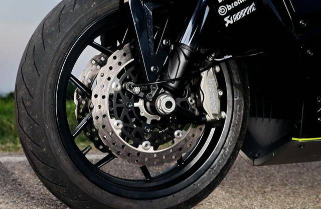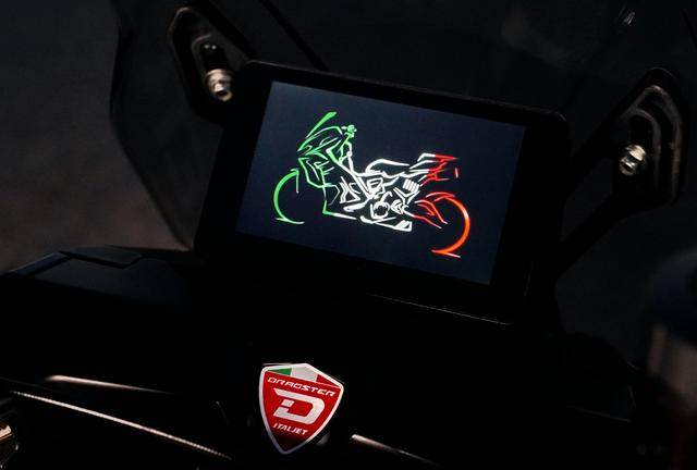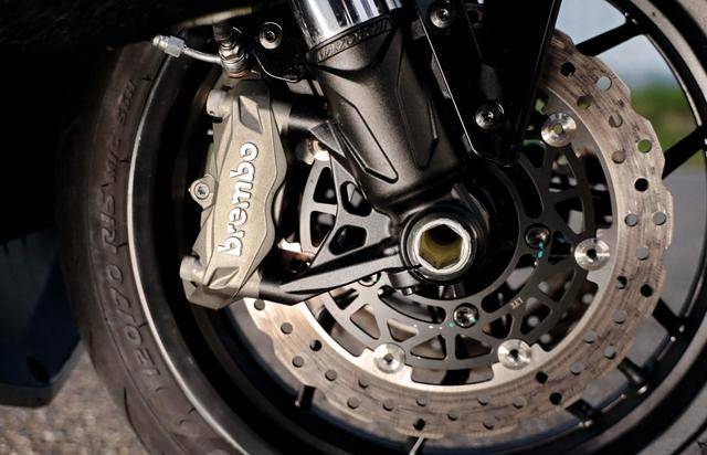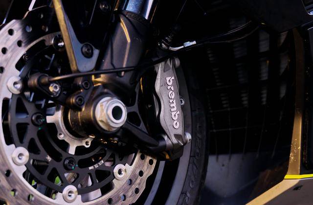 車體方面,采用全外露設(shè)計(jì)的鋼管式車架,Dragster 系列車型臉譜的外觀造型、配備了多處的空氣動力組件;懸掛系統(tǒng)方面,采用了 Marzocchi 配套的倒立式前叉,Ohlins 奧林斯配套的后減震(左側(cè)偏置式安裝的設(shè)計(jì))和轉(zhuǎn)向阻尼器;前 270 mm 雙碟、后 260 mm 單碟的制動系統(tǒng),Brembo 布雷博配套的剎車卡鉗、標(biāo)配了 ABS;直徑為 15 英寸的前后輪框標(biāo)配了超寬的 160/60 - 15 輪胎,全 LED 光源的燈光系統(tǒng),數(shù)字式的儀表板等。