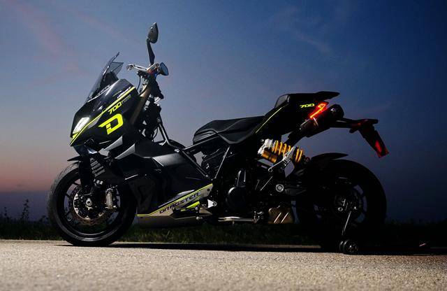 配置與規(guī)格上,新的 Dragster 700 Twin 高級版沿用了現(xiàn)有的水冷四沖程直列兩氣缸發(fā)動機(jī),排氣量 692 cc,Bosch 博世配套的電子燃油噴注系統(tǒng),六檔的變速齒輪箱,與之前的限量版一樣、標(biāo)配 Akrapovic 阿克拉波維奇的鈦合金排氣系統(tǒng),最大動力輸出 51kw(約 68 匹)。