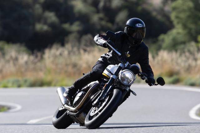 “速度雙缸”的操控性能比較靈活。凱旋工程師安裝了鋼管搖籃式車架,軸距設置為1413mm,后傾角和拖曳距分別是22.4º和91mm。這樣的轉向幾何設置比上一代更加積極,讓這樣的“現代經典”騎乘起來有點像運動型街車,為騎手創(chuàng)造平衡感較強的駕駛體驗。懸掛系統(tǒng)方面同樣做了提升,前輪安裝了馬祖奇43mm倒立式前叉,替代了原來的41mm正立式前叉;后部沒有沿用慣常的單筒減震器,而是用上了雙筒減震器,營造古香古色的韻味。