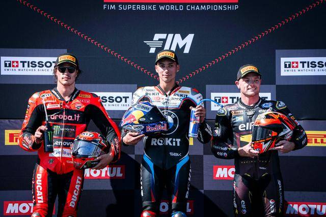 賽程為 10 圈的超級(jí)排位賽正賽(Super Pole Race),前面繼續(xù)是拉格里奧盧與杜卡迪陣營(yíng)的對(duì)抗,布雷加最終拿到了第一,拉格里奧盧落后 0.105 秒、獲得了第二,駕駛 19 號(hào)車(chē)的西班牙車(chē)手捌弟(Alvaro Bautista,巴迪斯塔)拿到了第三。