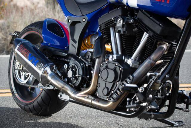 這款V型雙缸發(fā)動(dòng)機(jī)排量高達(dá)2032mL,再加上推桿氣門發(fā)動(dòng)機(jī)的低轉(zhuǎn)速大扭矩特性,讓KRGT-1成為真正的街頭暴力猛獸。據(jù)測(cè)試,KRGT-1從怠速起就能輸出充裕的力量,最大扭矩達(dá)到164N·m,扣除傳動(dòng)損失后,后輪仍然能獲得156N·m的強(qiáng)大扭矩。同時(shí),ARCH工程師在發(fā)動(dòng)機(jī)的前部安裝了隔離阻尼器,有效減輕了振動(dòng),提高了長(zhǎng)途巡游的舒適度。另外,與美式摩托車慣常采用的側(cè)吸式進(jìn)氣系統(tǒng)不一樣,KRGT-1采用了下吸式進(jìn)氣系統(tǒng),實(shí)現(xiàn)了簡(jiǎn)潔美觀的造型,更符合現(xiàn)代審美理念。