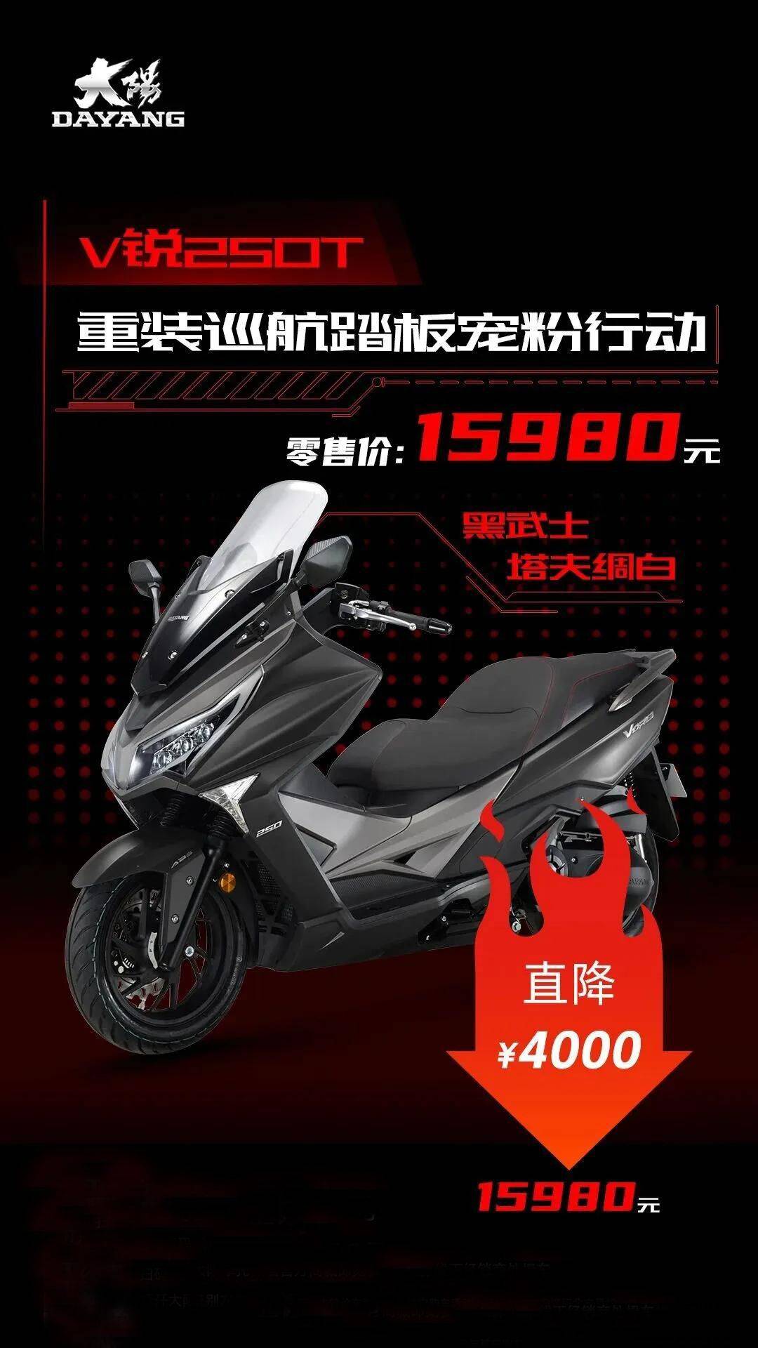 核心提示:2026款大陽V銳250T以寵粉價(jià)強(qiáng)勢(shì)登場(chǎng),直降4000元后僅售15,980元,以高價(jià)值配置重新定義250cc踏板車的誠(chéng)意標(biāo)桿。新車在動(dòng)力、安全