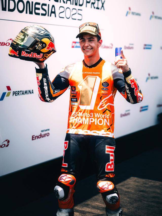 FIM GP 世界錦標(biāo)賽(FIM Grand Prix World Championship,也簡(jiǎn)稱 MotoGP)2025 賽季第十八個(gè)分站的比賽,十月 3 - 5 日在印尼的曼達(dá)利卡(Mandalika)賽車場(chǎng)舉行。Moto3 級(jí)別,駕駛 99 號(hào)車的西班牙車手魯埃達(dá)(Jose Antonio Rueda)以微弱的優(yōu)勢(shì)擊敗眾多的對(duì)手、奪得了印尼站的冠軍,提前奪得了 2025 賽季的世界冠軍(車手年度積分總冠軍)。