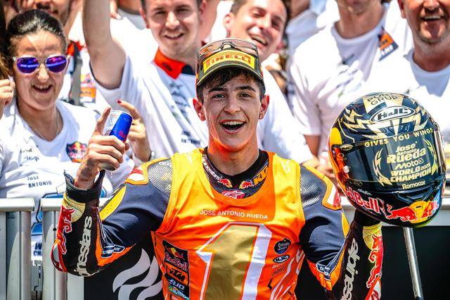 到本月底將滿 20 歲的魯埃達(dá),2022 年首次以外卡的身份在 Moto3 的分站比賽中亮相;2023 年開(kāi)始全季參賽、并在加泰羅尼亞Catalunya)站首次登上頒獎(jiǎng)臺(tái);2024 賽季,他在西班牙阿拉貢(Aragon)站拿到了職業(yè)生涯的首個(gè)分站冠軍;今年繼續(xù)留著 Moto3 的魯埃達(dá),在季初就開(kāi)始展現(xiàn)鋒芒,上半賽季的十一個(gè)分站比賽里,他拿下了六個(gè)分站冠軍、累計(jì)八次登上頒獎(jiǎng)臺(tái)。