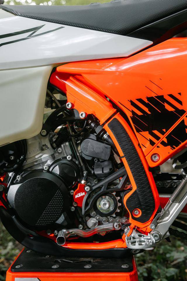 新的 300 EXC Hardenduro 版、基礎(chǔ)平臺來自 2026 標(biāo)準(zhǔn)款的 300 EXC,搭載一副水冷兩沖程單氣缸、排氣量 293.15 cc 發(fā)動機(缸徑、行程為 72 mm x 72 mm)的發(fā)動機,標(biāo)配了節(jié)氣閥口徑為 39 mm 的 TPI 電子燃油噴注系統(tǒng)、六檔的變速齒輪箱。