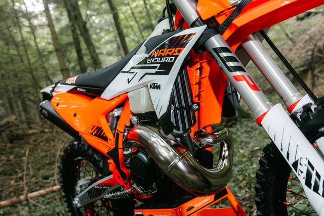 與現(xiàn)行的 2025 款相比,新的 300 EXC Hardenduro 版在硬件方面、實際上是跟隨著基本型的變化:經(jīng)過升級、并采用了新設(shè)置的前后懸掛系統(tǒng),位于油箱底部的燃油接頭上、增加了一個新的保護(hù)帽,采用了新設(shè)計的散熱器外蓋。此外,還有一個新的車身圖案/貼花。