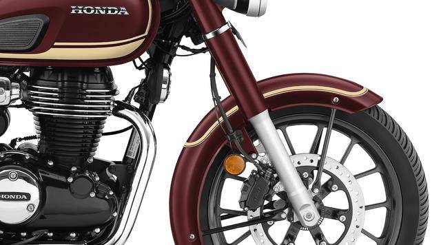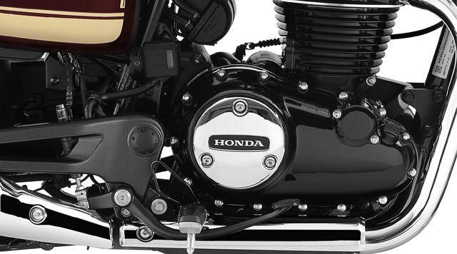 新的 CB350C 特別版搭載一副風(fēng)冷四沖程單汽缸、OHC 兩氣閥的發(fā)動機(jī),缸徑、行程為 70 mm x 90.5 mm,排氣量 348.36 cc,配備電子燃油噴注系統(tǒng)、五檔的變速齒輪箱、滑動式的離合器,最大動力輸出 15.5 kw。車體采用一副鋼制的鉆石型車架,前后碟式的制動系統(tǒng),圓形的 LED 前大燈、圓筒型的儀表,前 19、后 18 英寸的輪框(RS 版采用前 19、后 17 英寸直徑的車輪),標(biāo)配了 HSTC 牽引力控制系統(tǒng)。