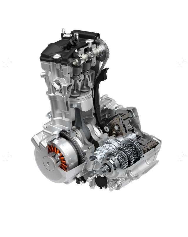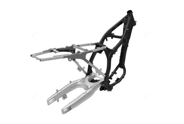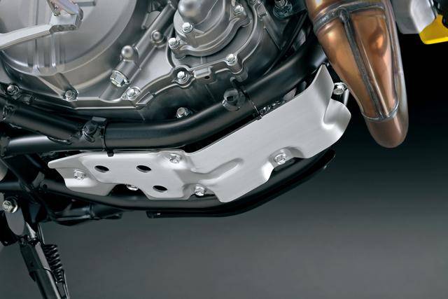 車體方面,采用一副全新開發(fā)的鋼制雙樑式車架;KYB 配套的懸掛系統(tǒng),前面是行程為 280 mm 的倒立式前叉,單筒式后減震的行程為 296 mm;小型的數(shù)字式儀表板,前后碟式的制動系統(tǒng),前 21、后 18 英寸直徑的鋼線式車輪,容量為 8.7 公升的油箱,920 mm 的鞍座高度,全車整備重量 151 公斤。