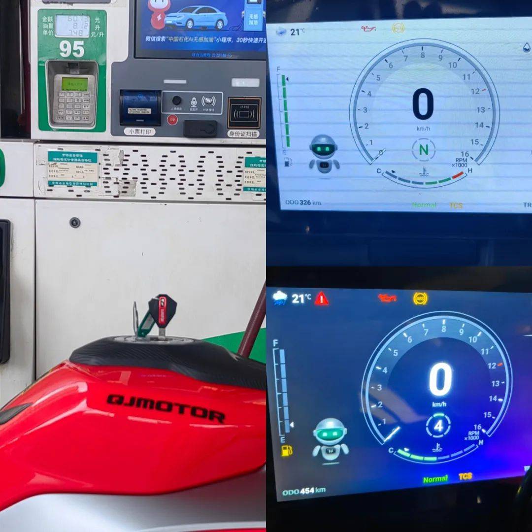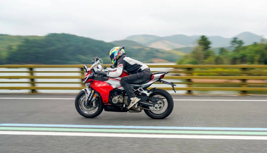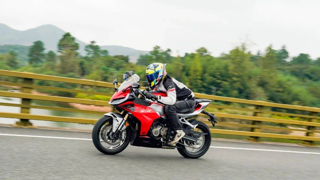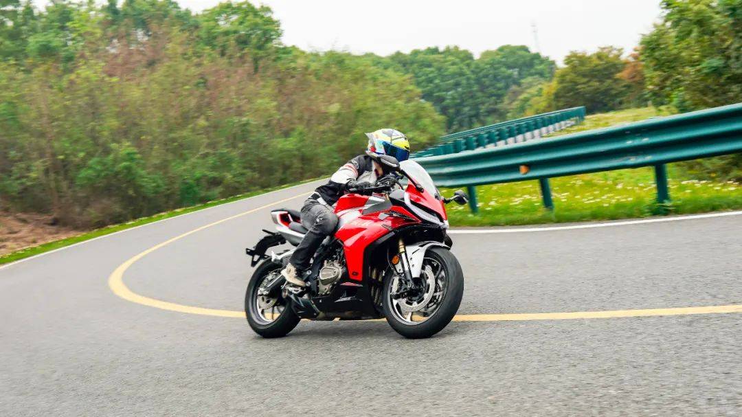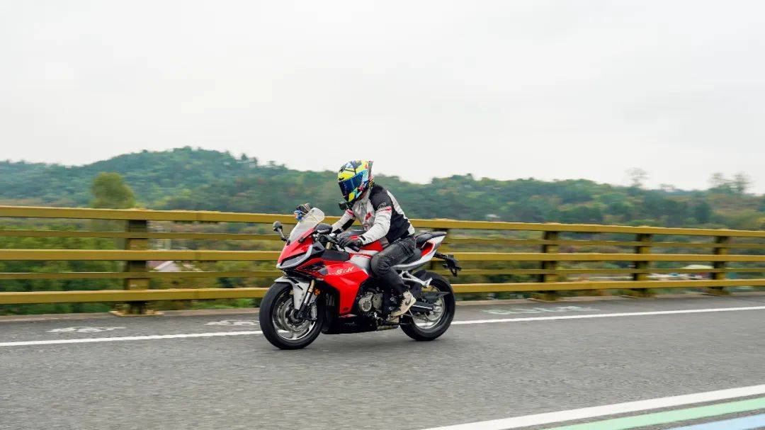 騎行三角同樣考慮到日常使用,手把高度也并非純跑車設定,較高的上聯(lián)板位置,配合較低的坐墊高度,在騎行時腰部帶有一定的前傾,但仍在可接受范圍內,整體偏低趴但不極端,這樣的設定能更好兼顧日常騎行,對新手的上手難度低。加速性能及震動并不是說考慮到日常使用,就放棄了車輛的高轉速性能,賽421在這兩者之間做到了較好的兼顧,極限斷油轉速在14500轉,14000轉時爆發(fā)最大馬力77.5匹,其中高轉動力表現(xiàn)出色;同時通過調整ECU噴油以及動力曲線,讓低轉速域也能擁有不錯的扭矩釋放,在小油門操作時,將轉速維持在3000轉,不斷升檔,直到6檔3000轉,這臺引擎依然穩(wěn)定,不拖檔也不喘,對于一臺高轉速引擎來看,這個表現(xiàn)難能可貴,值得好評。經(jīng)過測試,零百加速做到了4.1s(體重154斤),實測1檔的極速在92km/h,2檔132km/h,3檔167km/h,往后的檔位受制于路況安全并未一一測得。按照前面檔位的加速力道,合理推測極速突破220km/h是毫無壓力的,這個動力水準應對各個使用場景是輕而易舉。為了模擬日常使用中的加速超車場景,在快速路上體驗再加速能力,油門全開,車輛可以輕松完成從100到140的加速響應,再次測試,從120到170(表顯),加速同樣給人感受迅猛,這期間動力線性順暢,基本能滿足絕大部分摩友的動力需求。摩托財智,贊9加速過程中,油門的響應線性可控,引擎的運轉質感帶來出色的駕駛反饋和愉悅感,在同級中可排一流水準,尤其是四缸引擎高延展性的出力特性和綿密聲浪,給人的駕駛愉悅感拉滿。高速狀態(tài)下,維持150的速度騎行約1公里左右,車身非常穩(wěn)定,前輪穩(wěn)定的貼合路面,經(jīng)過大橋遇到較明顯的橫風,也沒有出現(xiàn)晃動,值得好評。震動抑制水準就我們的駕駛場景來看,可以給到優(yōu)異的評價,僅在12000rpm時存在一定的震感,主要集中在腳踏部位,較為綿密但完全可接受,對應速度已在140以上,常使用中基本用不到如此高的轉速,手把與坐墊位置則一直沒什么震感,表現(xiàn)相當出色,讓整車的運行質感增色不少。當然也有表現(xiàn)不足的地方,在高速行駛狀態(tài)可以清晰的感受到風擋的保護效果甚微,高速需求多的車友建議更換大一點的風擋。同時沒有快排的加持,個人感覺缺點什么,以及原車檔位過輕,加速時1升2檔有時會打進空擋,需要注意下。