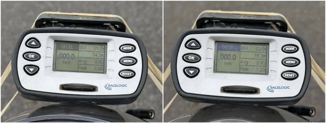 制動測試原廠配備西戶直推上泵,前雙碟Brembo卡鉗,后雙活塞卡鉗,配置上都是頂尖大牌,數(shù)據(jù)實測60-0的最好成績?yōu)?6.3m,30-0為4.3m,這個成績在測評過的諸多中大排騎士車中屬于良好水準,感覺調校上未能充分發(fā)揮這套剎車配置的性能,ABS介入時機合適,且彈手感不明顯。這套直推上泵的表現(xiàn)出色, 制動時基本沒有空余行程,制動力隨捏隨有,配合原廠標配的S3N高性能半熱熔胎,表現(xiàn)令人滿意。彎道體驗