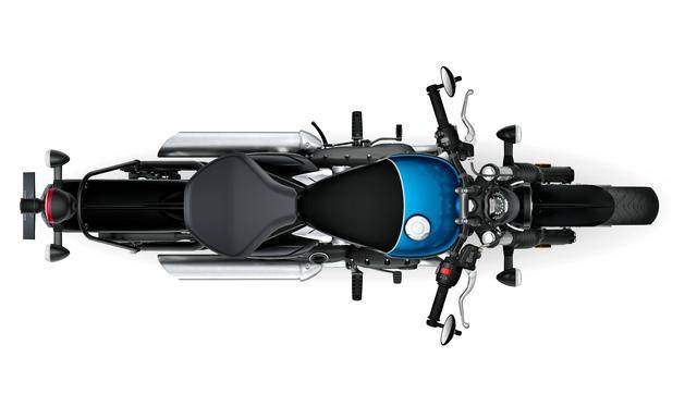 車體方面,采用一副鋼管制的搖籃式車架,標(biāo)志性的單座位設(shè)計,正立式的前叉、接近于水平安裝的多連桿后減震;Brembo 布雷博配套的前剎車卡鉗,前雙碟、后單碟的制動系統(tǒng)標(biāo)配了 ABS;有著復(fù)古風(fēng)格的圓形 LED 前大燈、圓筒型外觀的儀表,直徑為 16 英寸的前后車輪等。