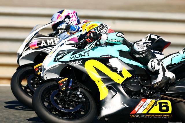 WorldWCR 在去年首次舉辦,賽事采用統(tǒng)一規(guī)格的 YZF-R7 作為競賽用車,西班牙女車手卡拉斯科(Ana Carrasco)拿到了首屆比賽的世界冠軍(車手年度積分總冠軍,下同)。2025 賽季的比賽,冠軍之爭、從一開始就成為西班牙車手之間的較量:去年拿到了總亞軍,駕駛著 6 號車、有著多年 Moto3 經(jīng)驗的赫雷拉(Maria Herrera),與 36 號車、有著歐洲錦標(biāo)賽冠軍頭銜的尼拉(Beatriz Neila),從揭幕戰(zhàn)拼到了這場最后一站。賽前,赫雷拉以 210 分暫居榜首,而尼拉則以 204 分排在第二,兩人間的差距只有 6 分。