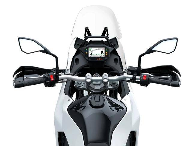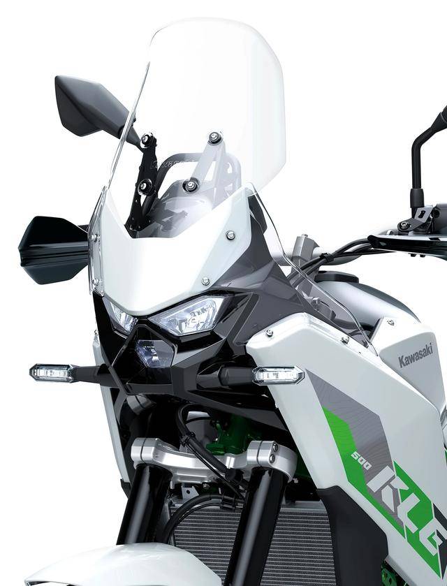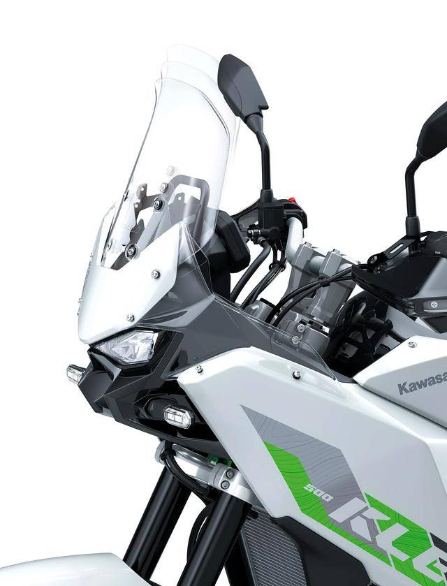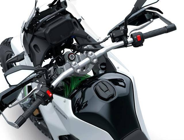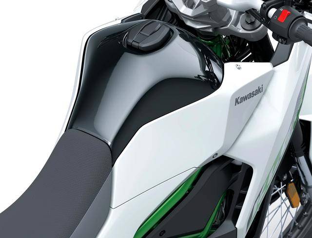 2、越野/拉力賽車風(fēng)格的外觀造型,可調(diào)的前風(fēng)擋、容量為 16 公升的油箱(KLE300 Versys-X 的油箱容量為 17 公升),LED 的前大燈;