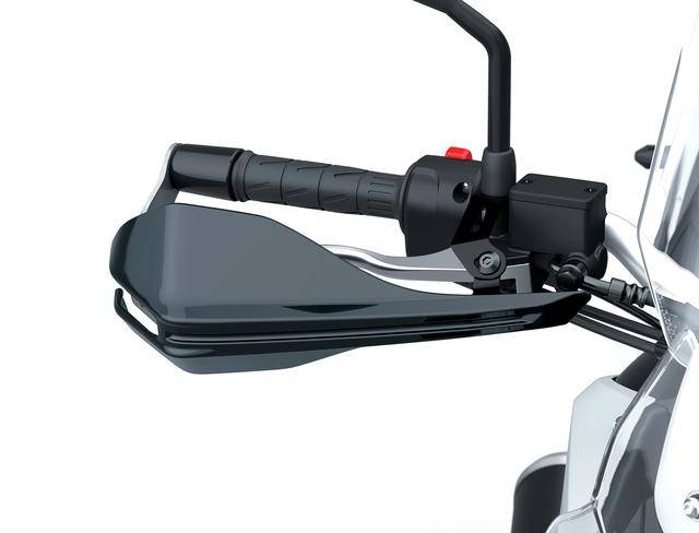 6、前后碟式制動(dòng)系統(tǒng),標(biāo)配了可關(guān)閉的 ABS;越野賽車 KX 風(fēng)格的、便于騎士身體移動(dòng)的鞍座;舒適化作為目標(biāo)的人體工程學(xué)設(shè)計(jì);并提供包括后邊箱、低座高的鞍座、霧燈、車體兩側(cè)護(hù)架等,一系列的原廠用品/改裝附件。