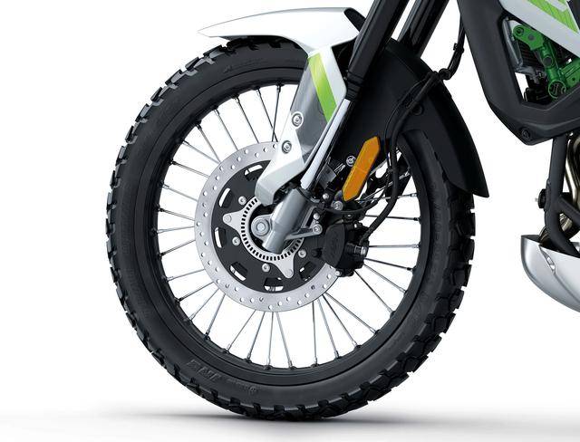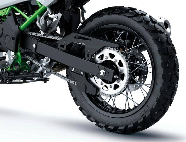 5、越野規(guī)格的前 21、后 17 英寸直徑車輪,標(biāo)配了 IRC 的越野輪胎;